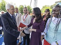 Poi l'incontro con i giovani nell'arena di Janine. A prendere la parola Bernadette, studentessa del Mali, e due giovani italiani. Poi, in uno spazio di confronto a porte chiuse, ecco il faccia a faccia fra il presidente Mattarella e una cinquantina di ragazzi e ragazze in forma privata.