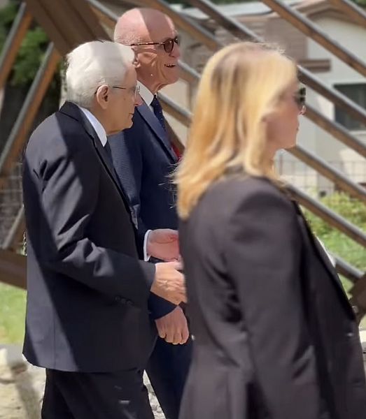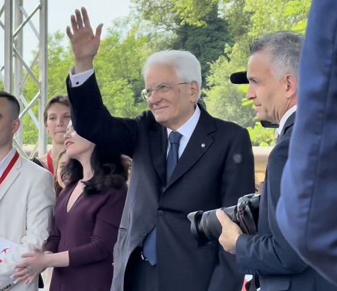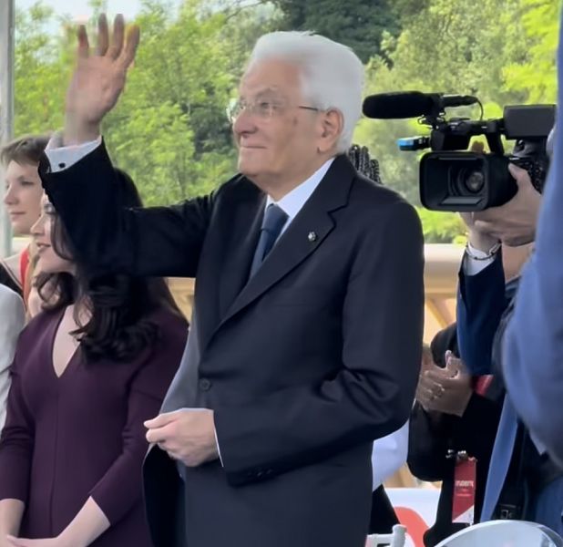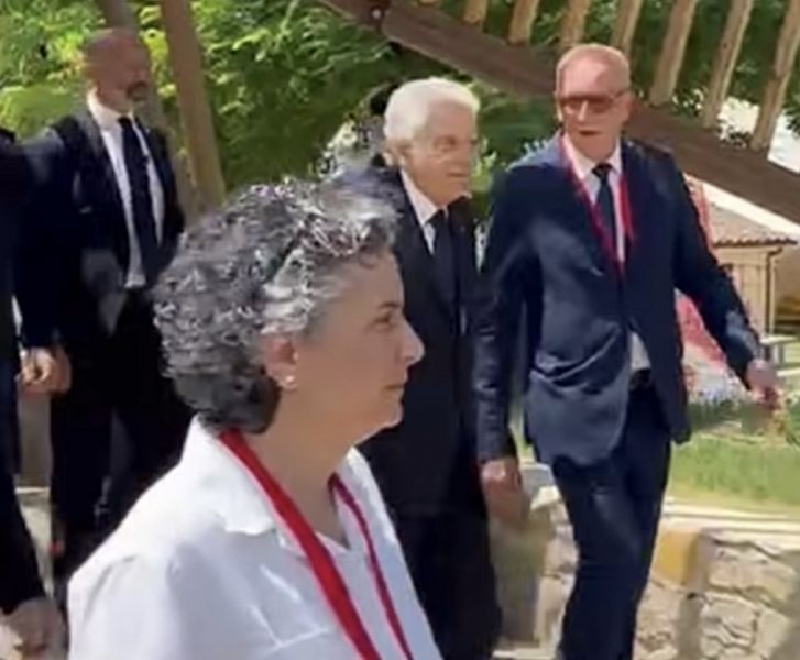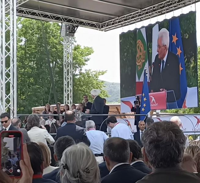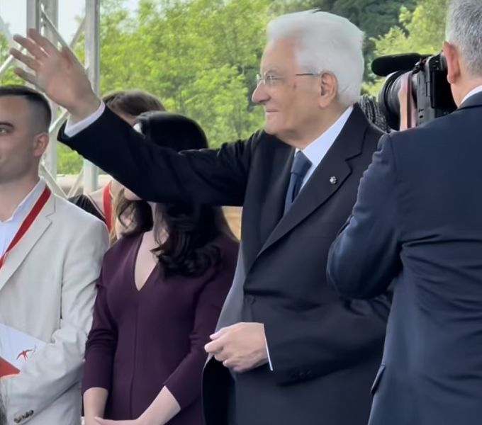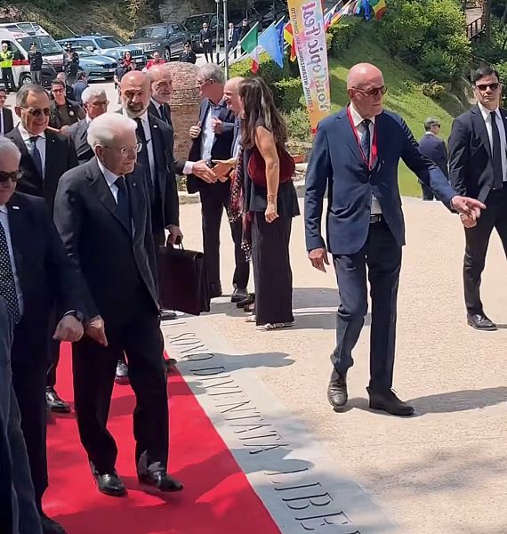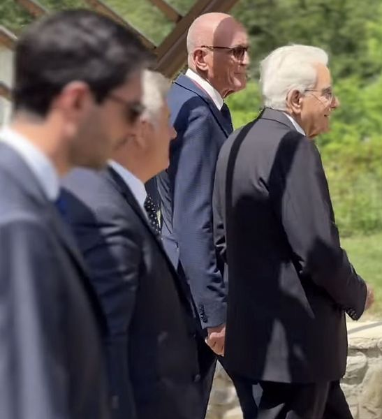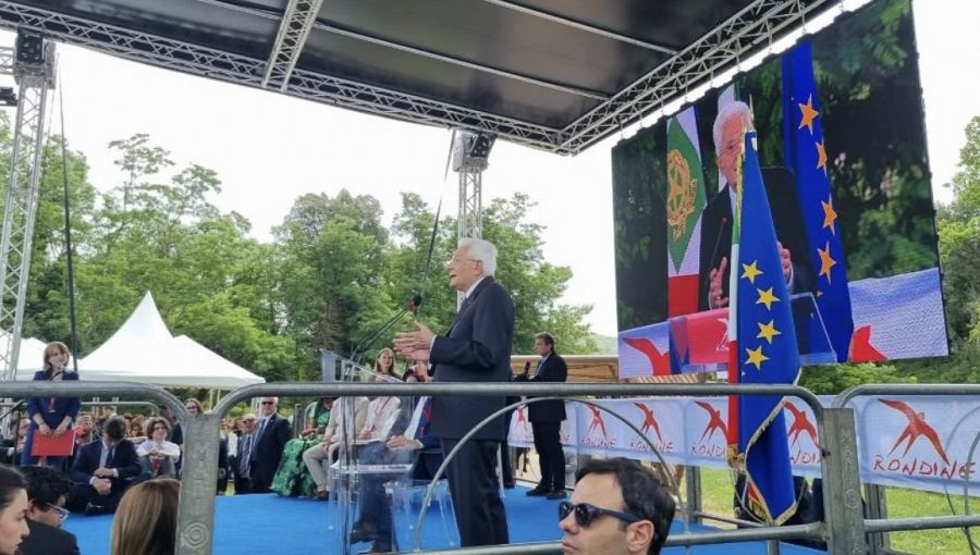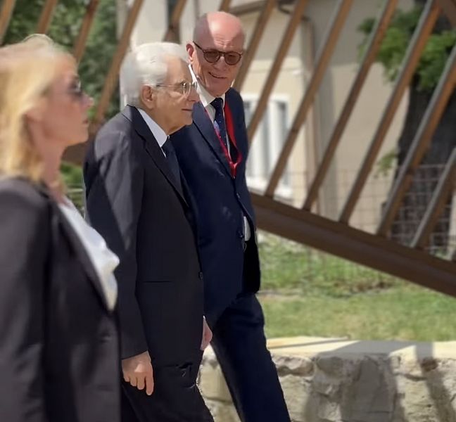 Il presidente Mattarella è stato accolto a Rondine da un'ovazione. Ad attenderlo c'erano i figli della senatrice a vita Liliana Segre, dal presidente della Regione Toscana Eugenio Giani e dal presidente della Cittadella Franco Vaccari, fondatore di quella realtà di pace, insieme con altre autorità civili e religiose.
