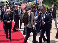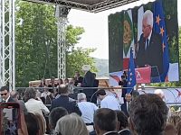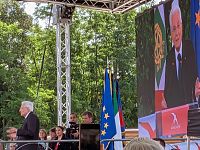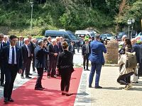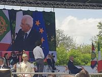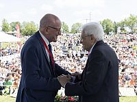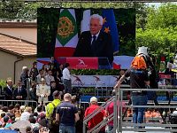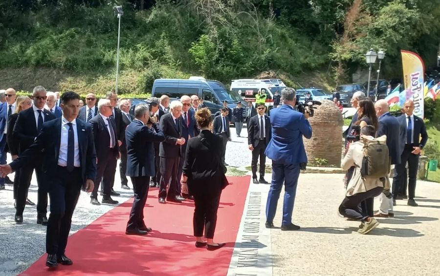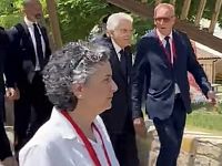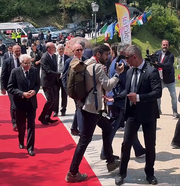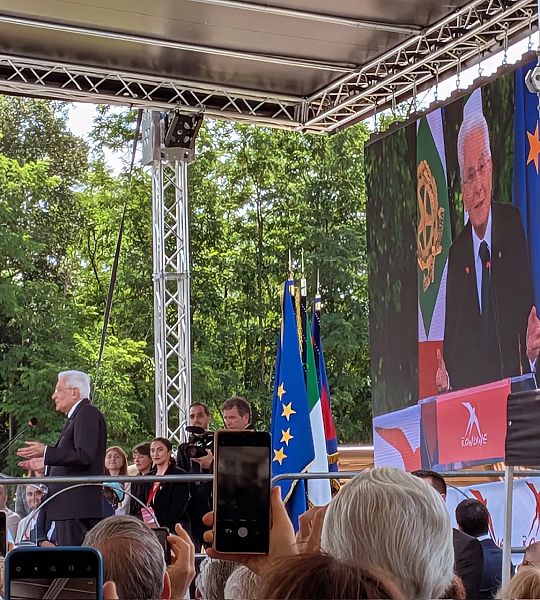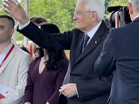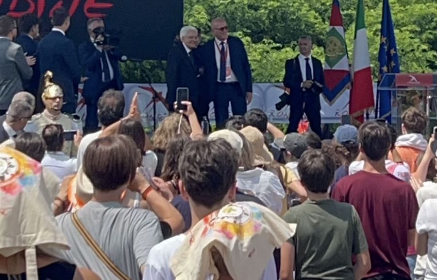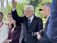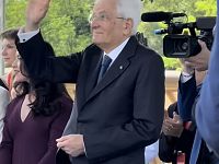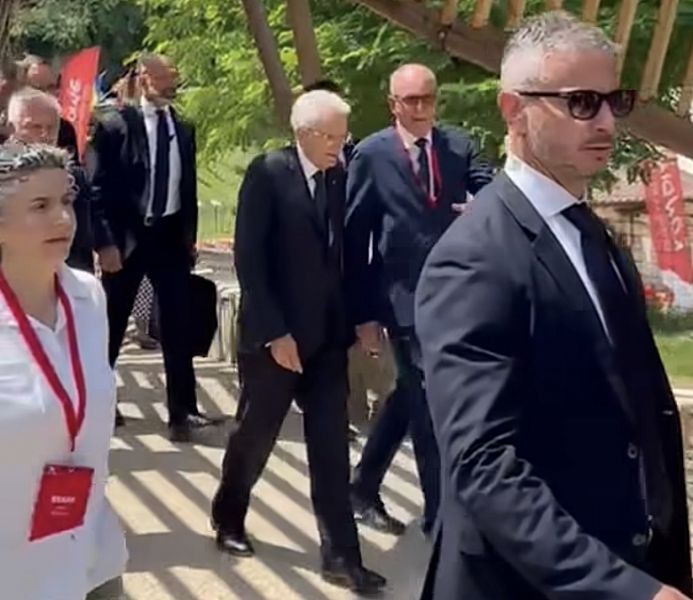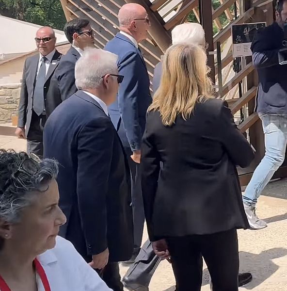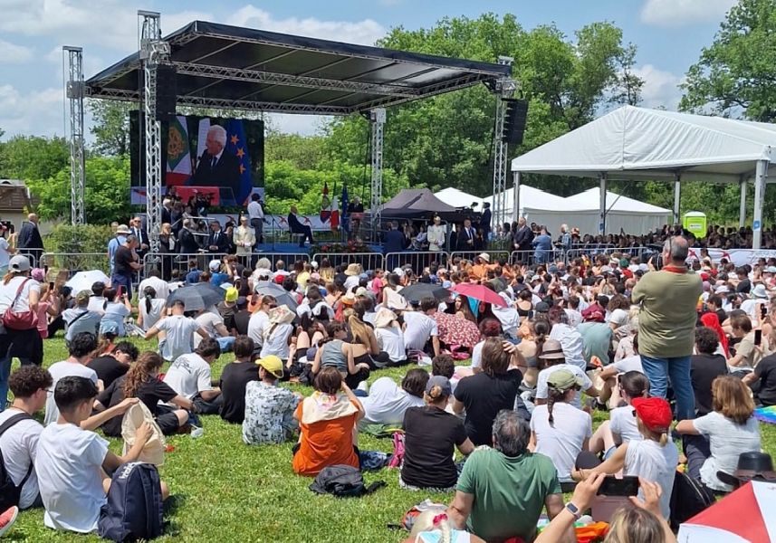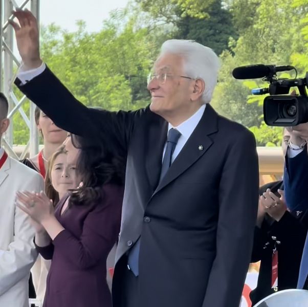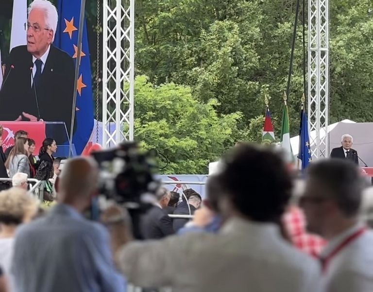 Il presidente Mattarella è stato accolto a Rondine da un'ovazione. Ad attenderlo c'erano i figli della senatrice a vita Liliana Segre, dal presidente della Regione Toscana Eugenio Giani e dal presidente della Cittadella Franco Vaccari, fondatore di quella realtà di pace, insieme con altre autorità civili e religiose.