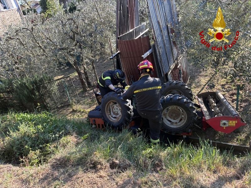 L'uomo imprigionato dal mezzo agricolo è stato estratto dai vigili del fuoco ed affidato ai sanitari del 118. Poi la corsa in ospedale