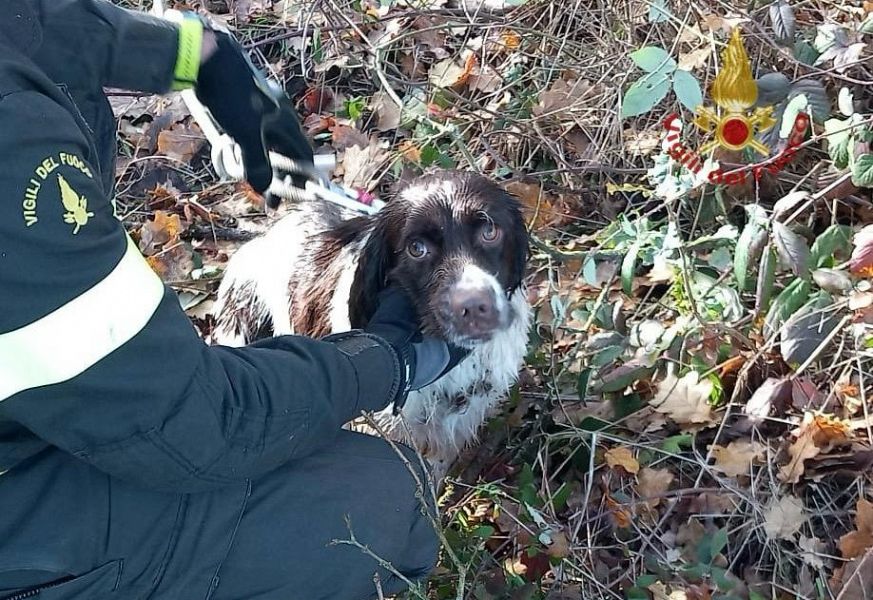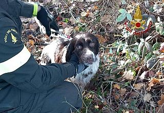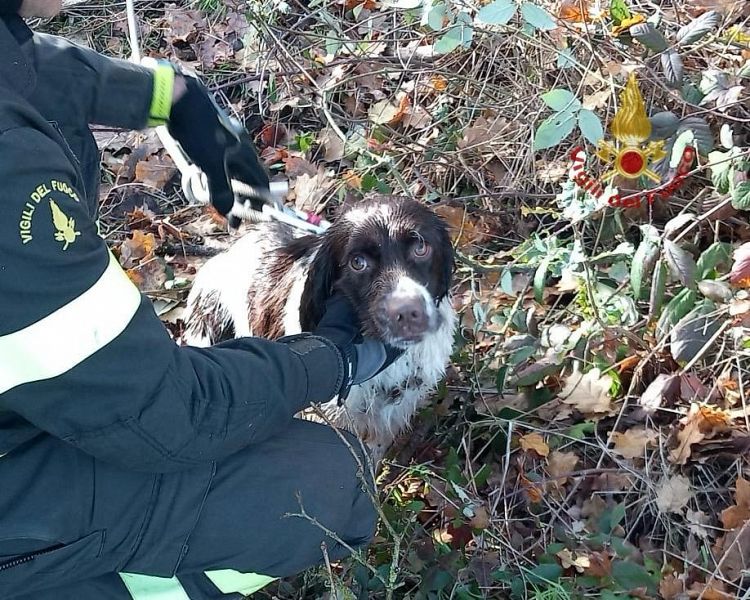 Il cane, uno springer, è stato quindi riconsegnato al proprietario. Fortunatamente, nella caduta ha riportato solo lievi ferite alle zampe.