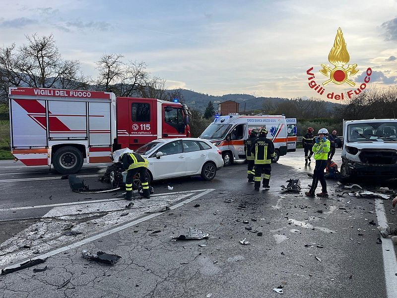 Sul posto sono intervenuti anche i sanitari del 118 con automedica, auto infermieristica, Misericordie di Arezzo e Terranuova Bracciolini, 2 ambulanze della Croce Bianca di Arezzo. Attivato anche l'elicottero Pegaso per una delle persone coinvolte nel sinistro. 5 uomini sono stati trasportati all’ospedale San Donato di Arezzo: 4 in codice 2 (giallo) e uno in codice minore.