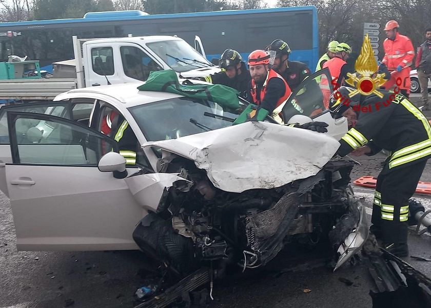 I vigili del fuoco hanno liberato una persona rimasta bloccata nell'abitacolo. Sul posto 118, elicottero Pegaso e polizia municipale