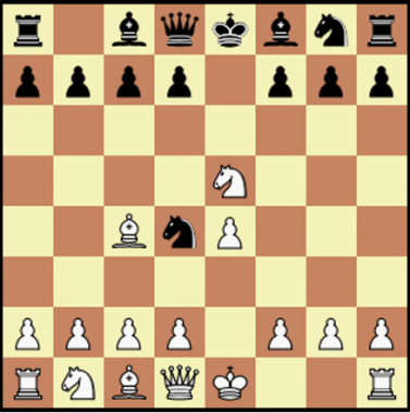 1) e4, e5, 2) Ac4, Cc6, (partita dell’Alfiere di Re, poco usata ad alti livelli ma comune e diffusa. Il Nero evita Cf3 che può rientrare in una Viennese o il dover decidere su un’immediata f4)