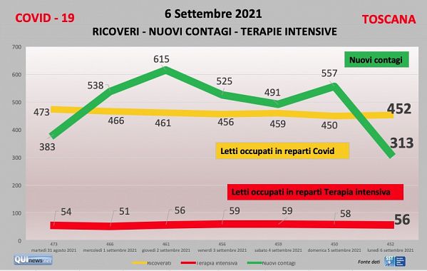 La situazione in Toscana con i dati forniti dalla Regione e dal Ministero della salute.