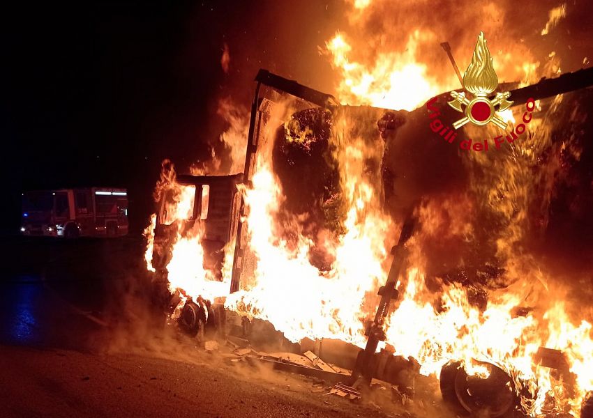 L'incendio ha avvolto completamente il mezzo pesante carico di carta in brevissimo tempo. Il camionista ha tentato di spegnerlo con l'estintore