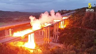 Spettacolare demolizione all'alba, giù il viadotto