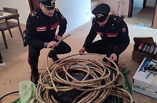 La successiva perquisizione veicolare e un’ispezione delle cunette stradali dove i due si erano disfatti del rame, hanno permesso ai carabinieri rinvenire, oltre ai 100 chili di metallo, anche arnesi da scasso.