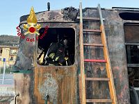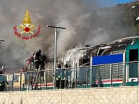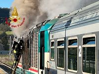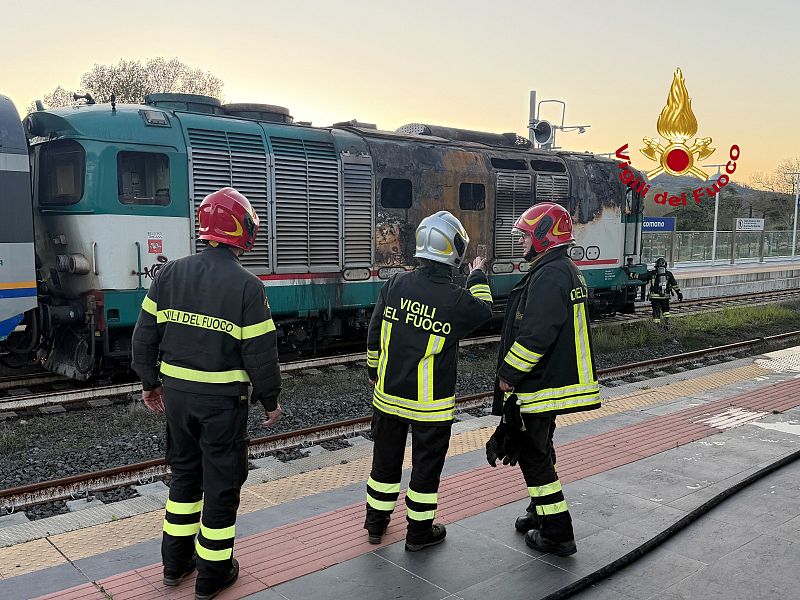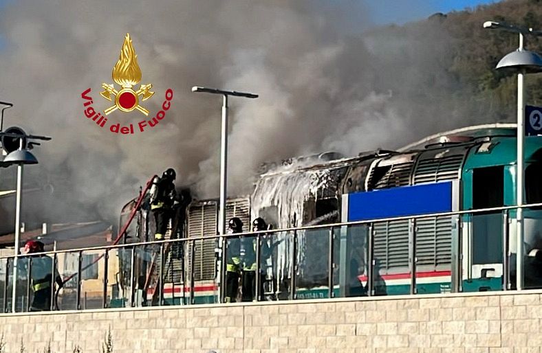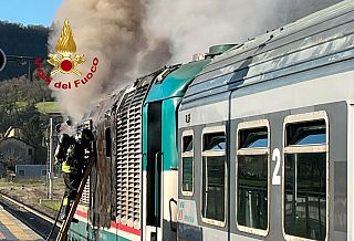 L'incendio è divampato quando il treno stava entrando in stazione. I viaggiatori sono stati fatti scendere e sono intervenuti i vigili del fuoco