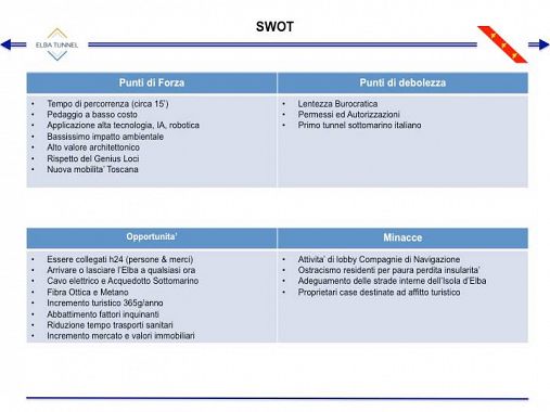 “Non saranno Cavo né Piombino i punti di accesso al tunnel - ha inoltre precisato Ulivagnoli - questo posso dirlo, ma al momento non renderemo pubblico dove pensiamo possano essere. Inizialmente si era pensato a queste due zone perché sono le più vicine ma con un'opera di questo tipo bisogna pensare ad una serie di altri fattori come all'impatto sul traffico che sarà importante e che deve quindi essere smistato senza creare problemi”.