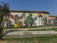 L'opera realizzata da Alleg ha dimensioni colossali, e anima di colore il perimetro della struttura detentiva per malati psichiatrici