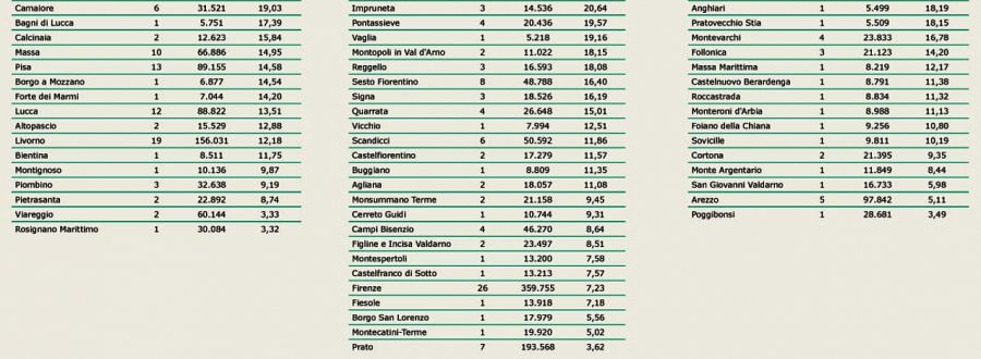 I nuovi contagiati abitano in 122 Comuni della Toscana che trovate nelle tabelle qui sotto.
