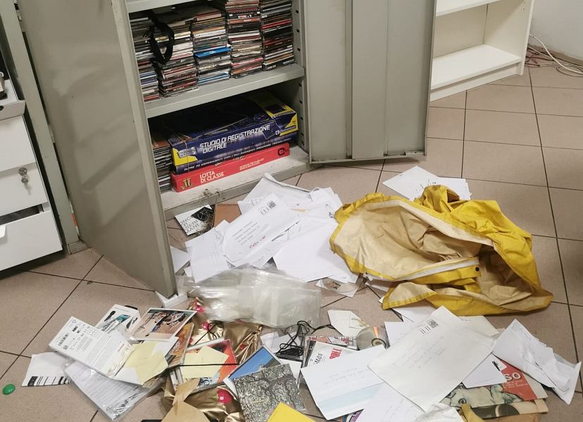 FIRENZE — Raid dei ladri nella notte nella sede fiorentina di Controradio. L'amara sorpresa dell'intrusione è avvenuta al mattino: portone scassinato, uffici e redazione a soqquadro.