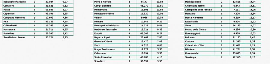 Nella tabella qui sotto trovate invece i Comuni di residenza dei 538 nuovi casi di contagio di oggi. I Comuni che non sono nominati non hanno registrato nuovi casi positivi.