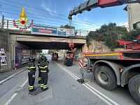 L'incidente durante l'attraversamento di un sottopasso ferroviario. Sul posto vigili del fuoco e polizia municipale