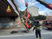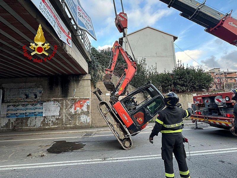 L’intervento dei vigili del fuoco è valso al recupero dell’escavatore e al suo riposizionamento in condizioni di sicurezza, al fine di eliminare ogni potenziale pericolo per la circolazione.