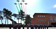 FIRENZE. Per il giuramento dei 33 allievi della Scuola militare aeronautica "Douhet" si è tenuto lo spettacolo con i sei velivoli della Pattuglia acrobatica