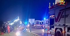FOIANO DELLA CHIANA. Coinvolti nello scontro il bus di linea con passeggeri a bordo, un autoarticolato e un'automobile. Per i soccorsi aperto un varco tra le lamiere