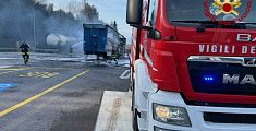 PISTOIA. L'incendio è stato spento dai vigili del fuoco. Il mezzo trasportava materiale alimentare in contenitori in plastica