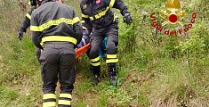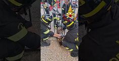 VINCI. L'animale ferito è stato soccorso dai vigili del fuoco, che hanno utilizzato un divaricatore per allargare le sbarre di ferro e liberarlo