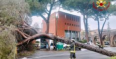 PISA. L'albero si è abbattuto su due auto in sosta ed ha bloccato completamente la strada. L'intervento dei vigili del fuoco