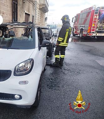 LIVORNO — Alle 4 di questa mattina i vigili del fuoco sono intervenuti in via Pacinotti a Livorno zona rotonda, per spegnere un incendio che ha interessato due auto parcheggiate e la facciata del palazzo, in particolare a zona delle finestre al pian terreno e la porta del box.