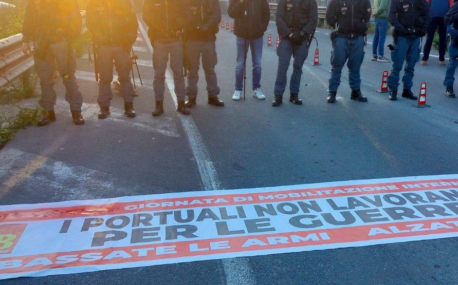 Il sindacato Usb lancia la protesta per il presunto passaggio di una nave carica di materiale bellico. Intervento delle forze dell'ordine