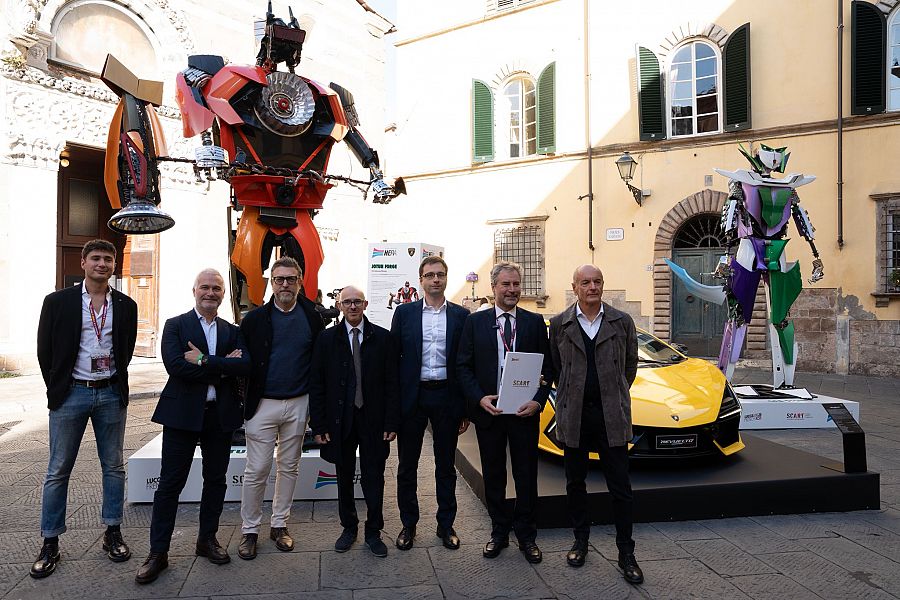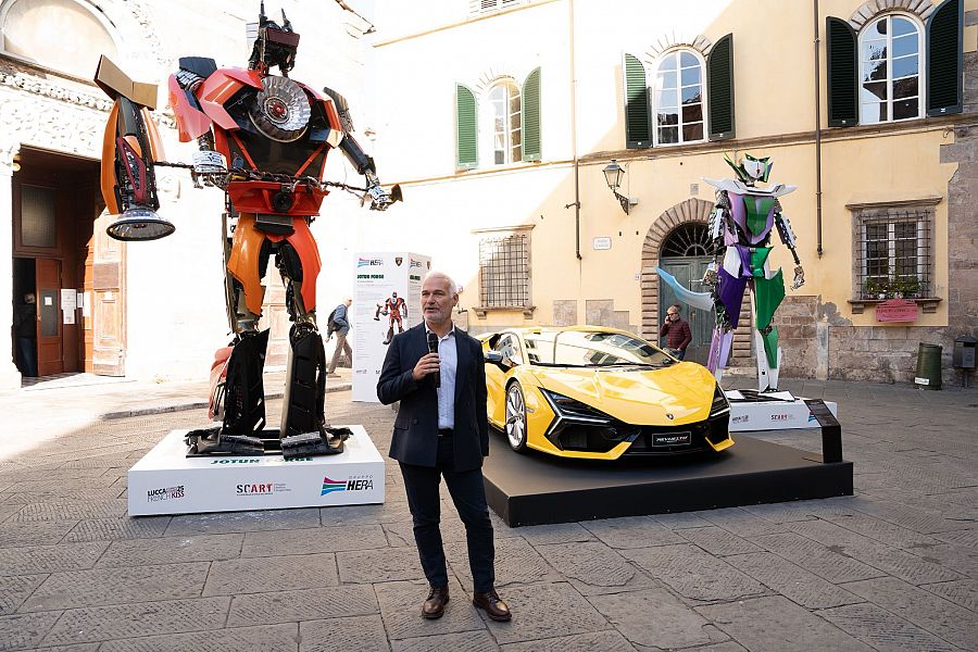 Presentati in anteprima al Lucca Comics i 6 robot, alti 4 metri, realizzati in Toscana con gli scarti di produzione delle auto Lamborghini