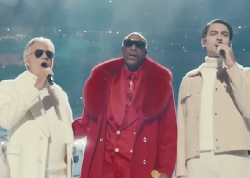 Il tenore di Lajatico, dopo aver intonato alcuni classici di Natale durante l’intervallo del match di Natale tra Detroit Lions e Minnesota Vikings, ha chiuso lo show cantando “White Christmas” insieme al figlio Matteo e al celebre rapper Snoop Dogg e le cantanti Ejae, Audrey Nuna, Rei Ami e Lainey Wilson.