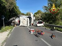 Cisterna carica di soda caustica si ribalta sulla statale