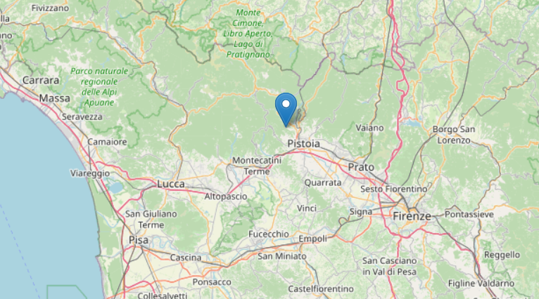 Era invece mezzanotte e mezzo quando 6 chilometri a nord ovest dell'abitato di Pistoia si è verificata l'altra scossa, di magnitudo 2.2 con epicentro alle coordinate geografiche (lat; lon) 43.97; 10.86 e a una profondità di 55 chilometri.