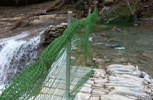 PALAZZUOLO SUL SENIO — Reti di contenimento per far fronte all'emergenza derivante dai rifiuti dispersi sulle sponde del fiume Rovigo, in località Le Spiagge a Palazzuolo sul Senio, dopo che il maltempo eccezionale del 14 e 15 marzo scorso ha riportato alla luce una discarica degli anni ‘70.