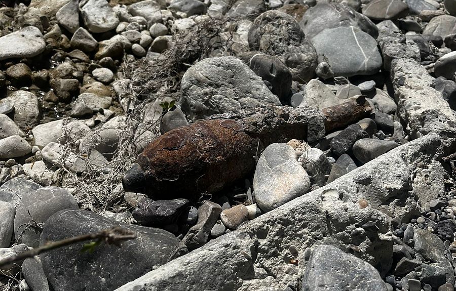 Sul greto del fiume un proiettile della seconda guerra mondiale