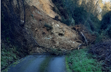 Terra e detriti hanno bloccato la strada che conduce all’abitato di Fondicacce. Nessuna persona nelle 4 abitazioni a monte della zona interessata