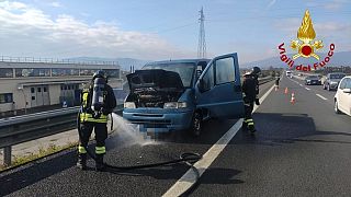 I vigili del fuoco sono intervenuti per prestare soccorso agli automobilisti coinvolti in un principio di incendio che ha interessato un furgone