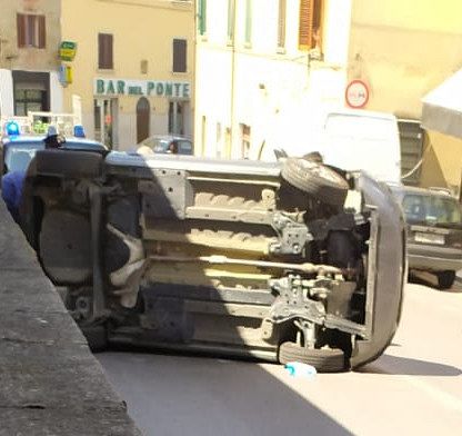 PONTICINO — Una donna di 77 anni alla guida della sua auto si è cappottata in mezzo all'abitato di Ponticino, nell'Aretino, dopo aver perso il controllo del mezzo.