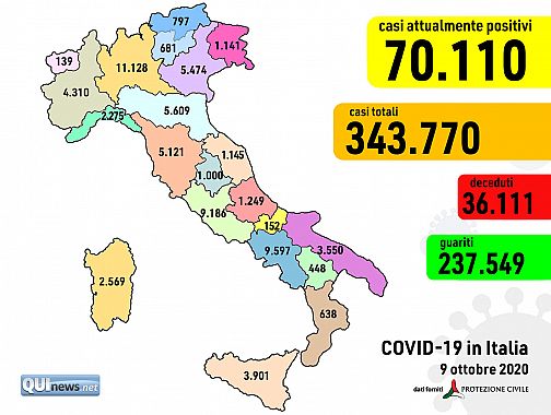 Guardando alla situazione negli ospedali, sono 4.086 i ricoverati con sintomi (+161), 387 quelli in terapia intensiva (+29), a fronte di un numero di attualmente positivi pari a 70.110.