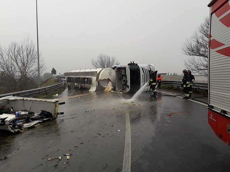 SAN GIMIGNANO / CERTALDO — Il camion cisterna che si ribalta e l'olio di cui è carico che si riversa sull'asfalto minando la sicurezza della strada: è successo ieri pomeriggio, e per questo motivo adesso la strada regionale 429 rimarrà chiusa per un tratto di 5 chilometri tra Certaldo, Gambassi Terme e San Gimignano fin dopo Befana.