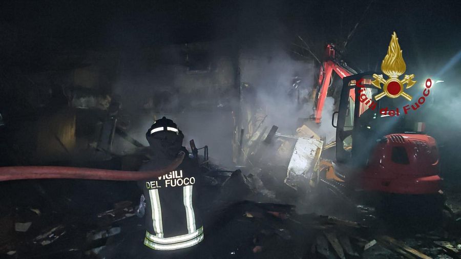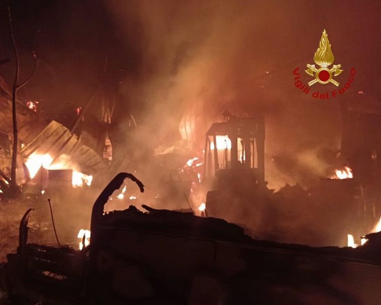 Le fiamme hanno coinvolto alcune strutture al cui interno si trovavano macchine agricole e altre attrezzature. Il cane era lì, ed è stato tratto in salvo dal personale dei vigili del fuoco.