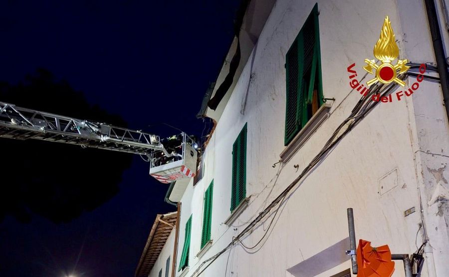 La squadra, con autoscala e autogru, ha provveduto a mettere l'area in sicurezza. Forse complice la notte fonda, nessuno è rimasto ferito.
