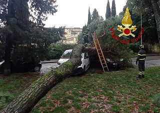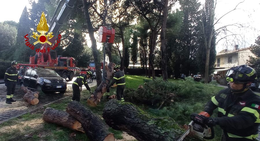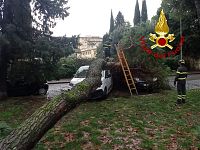 Sul posto sono intervenuti i vigili del fuoco del distaccamento di Firenze ovest con una squadra, un’autoscala e un'autogru, per effettuare i tagli della chioma e del tronco e per liberare i due mezzi rimasti coinvolti.