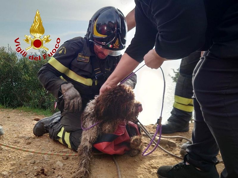 E' successo a Scarlino, nella zona compresa fra Cala Violina e Cala Martina. Il cane era finito giù in un punto particolarmente ripido, tanto da rendere necessario l'intervento dei vigili del fuoco che sono accorsi dal distaccamento di Follonica.
