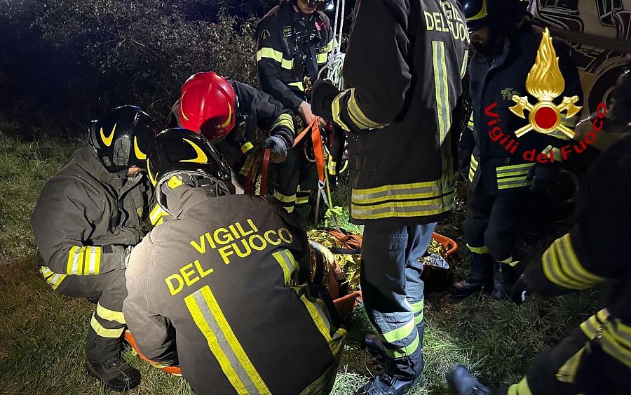 L'uomo, caduto per diversi metri, è stato raggiunto grazie a tecniche speleo alpino fluviali e poi affidato ai sanitari del 118