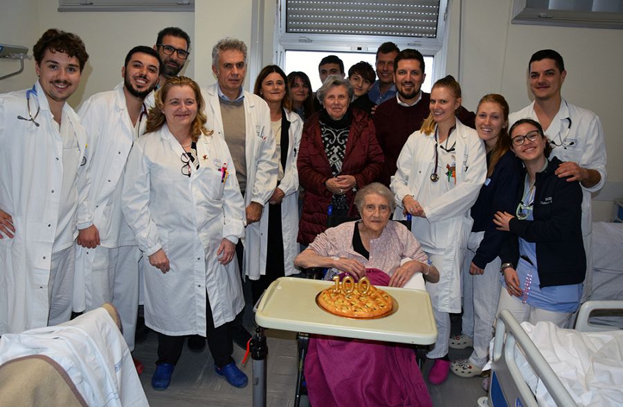 Festa a sorpresa all'ospedale Le Scotte di Siena per la signora Natalia Tiberi, che proprio durante il ricovero ha spento cento candeline
