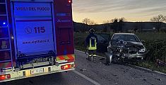 Intervento dei Vigili del fuoco per estrarre uno dei due conducenti dall'abitacolo: l'uomo è stato trasportato in ospedale con l'elisoccorso Pegaso