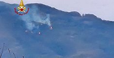 L'incendio divampato nel fitto del bosco è rimasto attivo sino a notte fonda. Oltre ai vigili del fuoco, intervenuti i carabinieri forestali