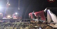 L'autoarticolato nell'incidente ha impattato sul guardrail. Le due persone a bordo sono rimaste ferite. Strada bloccata in entrambe le direzioni