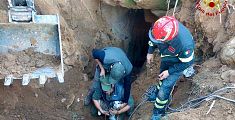 Era smarrito da due giorni ed è stato ritrovato in una fenditura nel terreno, profonda ben otto metri: con un escavatore è stato liberato e recuperato