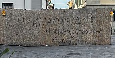 La scritta blasfema vergata con vernice spray nera sull'area cantiere del restauro della chiesa è stata segnalata alle forze dell'ordine
