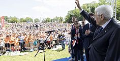 Il capo dello Stato è arrivato in Toscana in elicottero per aprire il YouTopicFest. Oltre 5.000 giovani alla marcia contro la guerra